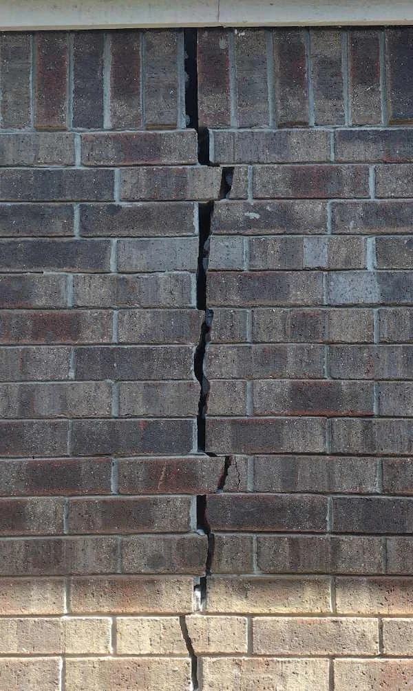 The most common warning signs are stair-step brick cracks, drywall cracks near doors and windows, uneven floors, sticking doors or windows, trim separation, and gaps around frames. A single hairline crack does not automatically mean the foundation is failing. The better inspection rule is to look for patterns, not isolated defects: multiple symptoms in the same zone, cracks that widen or come back after patching, displacement across a crack, or interior and exterior symptoms that line up.
